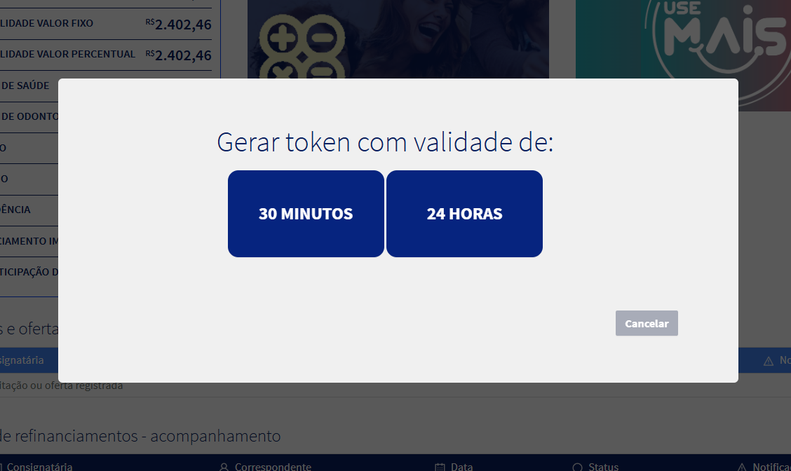- Selecione o Token com validade de 24 horas